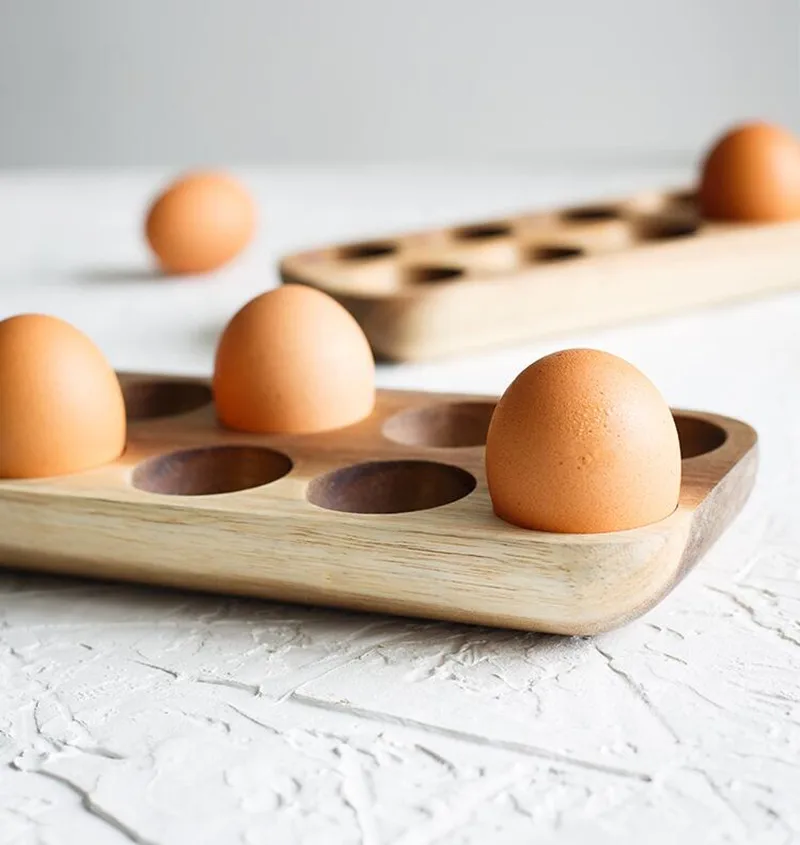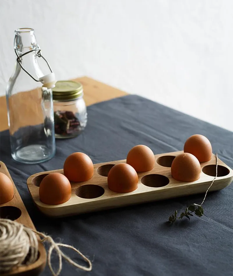 Solid Wood Egg Storage Box Japanese Style Wooden Double Row Eggs Holder Home Organizer Rack Kitchen Decor Accessories